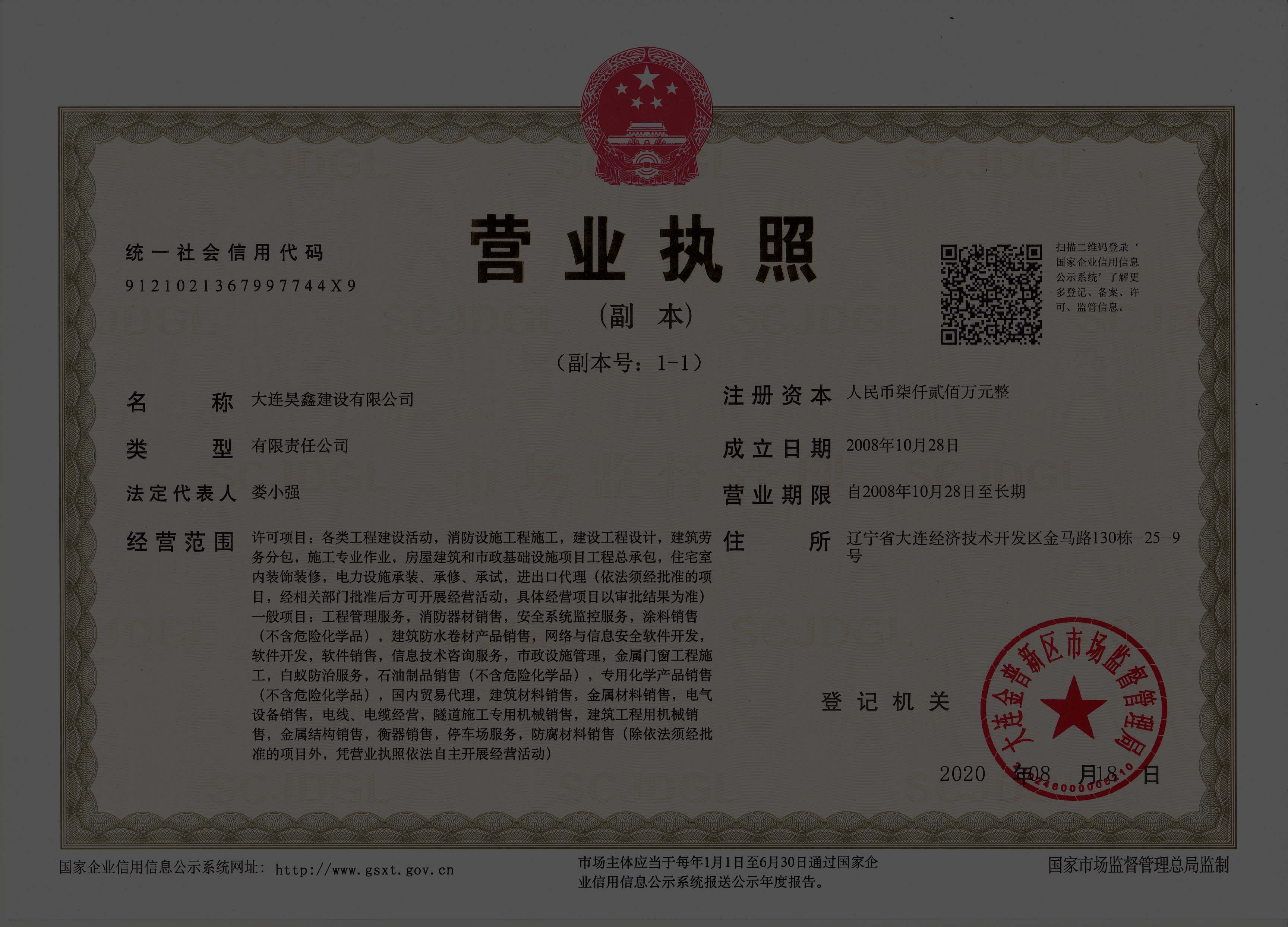 大連昊鑫建設(shè)有限公司珠海分公司